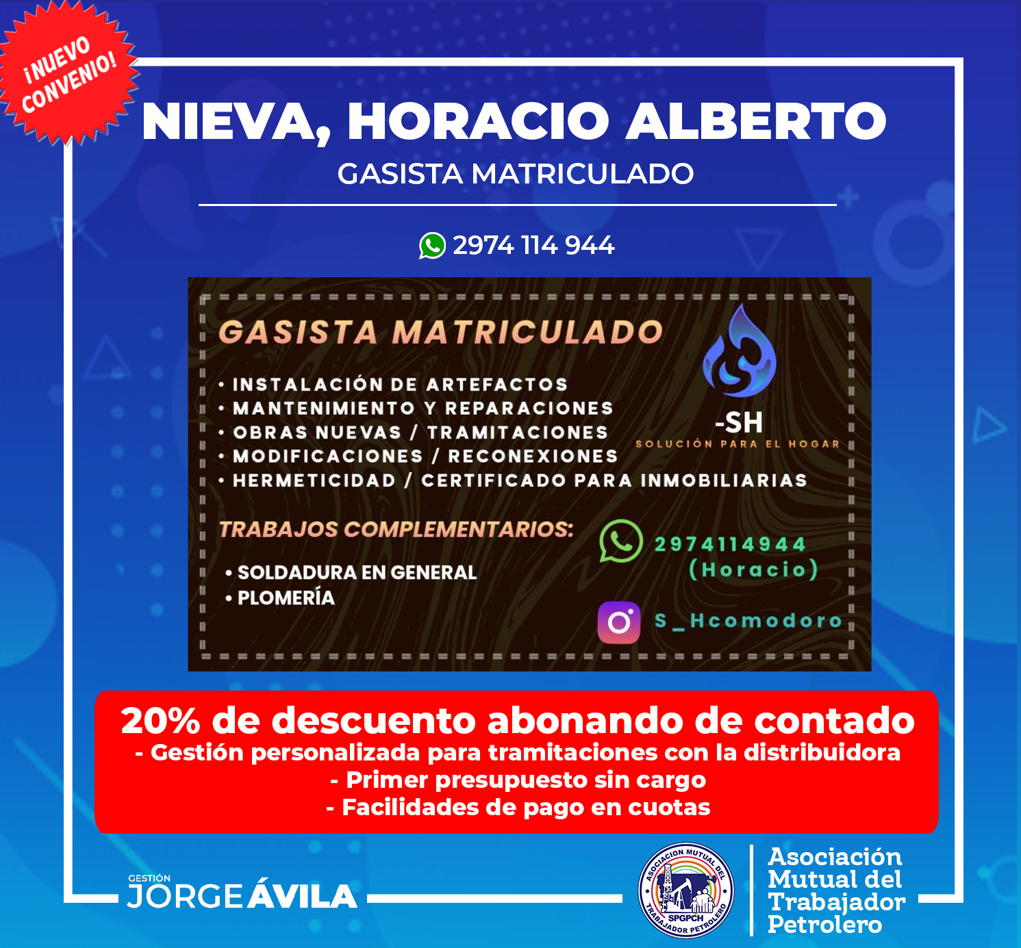Nuevo convenio con Horacio Alberto Nieva, Gasista Matriculado